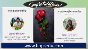 শিক্ষক বাতায়নে এবারের সেরা অনলাইন পারফর্মার মোছাঃ নুরুন নাহার সহকারী শিক্ষক কাঁঠালপোতা সরকারি প্রাথমিক বিদ্যালয় মেহেরপুর সদর, মেহেরপুর। এ পাক্ষিকে সেরা কন্টেন্ট নির্মাতা ও সেরা অনলাইন পারফর্মার  নির্বাচিত হওয়ায় শহিদুজ্জামান স্যার ও নুরুন্নাহার ম্যাডাম কে  www.bopsedu.com ও Bangladesh Online Primary School এর পক্ষ থেকে প্রান ঢালা অভিনন্দন জানাচ্ছি।